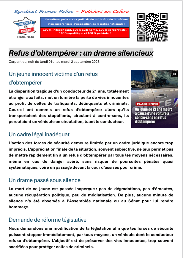Depuis janvier 2025, ce sont 12 suicides dans la police (soit 2 par mois en moyenne); 3 suicides dans la gendarmerie; Plus de mille ces deux dernières décennies, « SILENCE RADIO… », nos camarades partent dans l’indifférence, ils sont devenus transparents; Aucune déclaration publique, aucun message des services com’ de l’administration, pas d’hommage, pas de cérémonie, des enquêtes qui concluent généralement à des problèmes personnels, uniquement de l’indifférence pour des hommes et des femmes qui eux aussi ont pourtant servi la France.